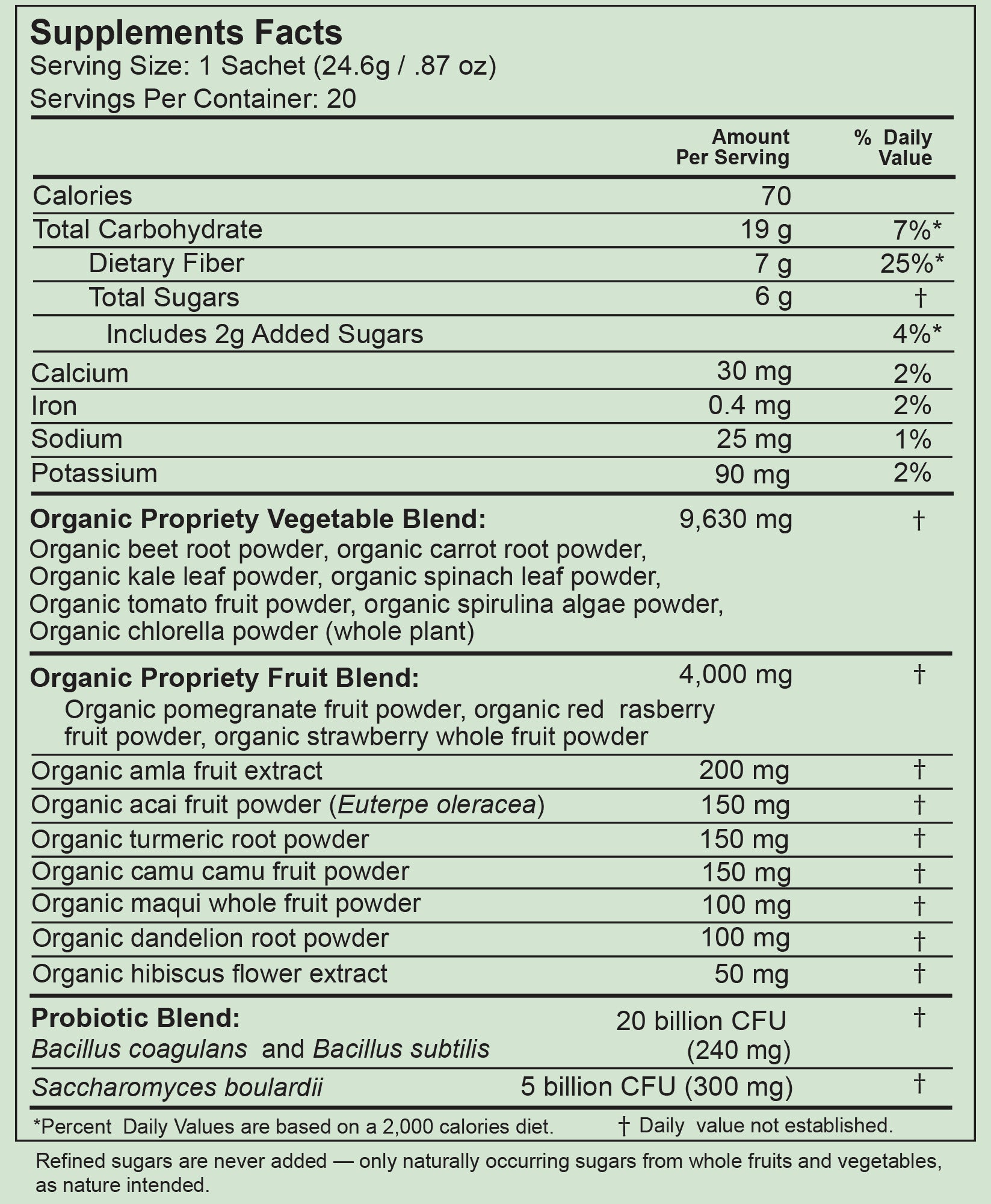 Aloha Radiate AM Elixir was created to help you meet your daily nutritional needs of fruits and vegetables. It’s an ideal part of your morning routine, but can be taken any time of the day as desired on an empty stomach.